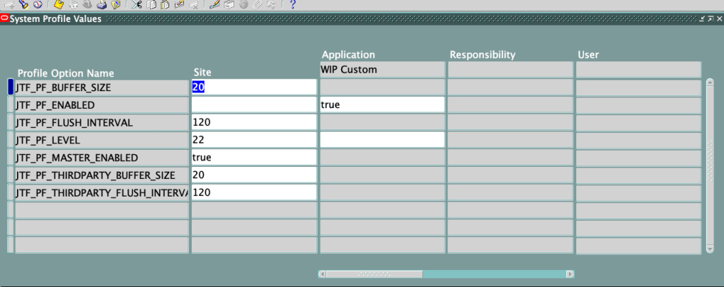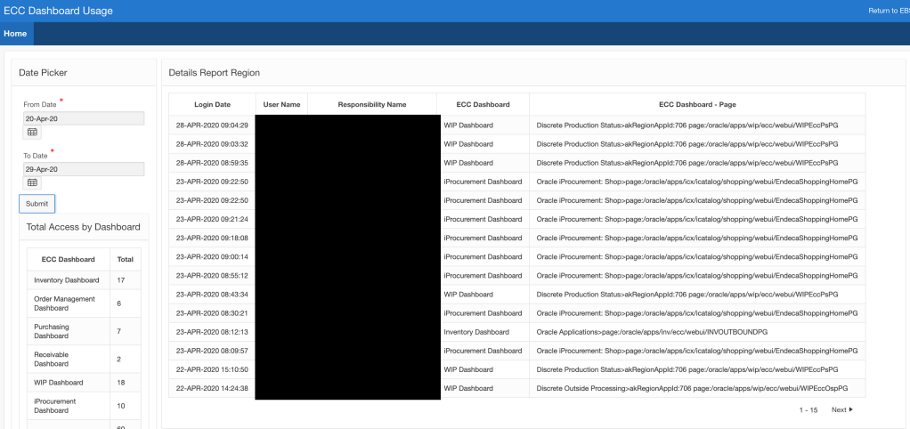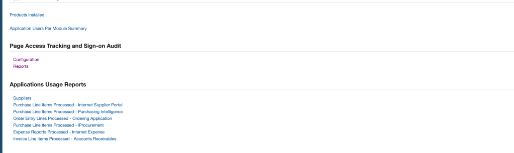 After this you could use EBS ->System Administrator -> Oracle Application Manager -> Application Usage ->Report OR (in my case, I wrote a couple of SQL queries and throw them in Oracle APEX – more intuitive for me than reading the canned report)